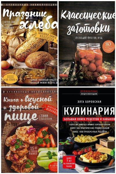 В книгах предложены много рецептов, которые составят основу как ваших завтраков, обедов и ужинов, так и праздничных застолий. Подробные рецепты самых различных блюда даны с учетом важнейших нюансов процесса их приготовления. Приводятся полезные сведения о питательной ценности продуктов, советы, с помощью которых можно избежать ряда серьезных ошибок.