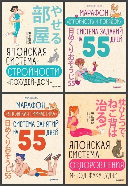 Авторы — известные японские врачи, косметологи, психологи. Книги серии отличаются ярким дизайном, содержат красивые иллюстрации и фотографии. Интерактивные книги-марафоны всего за 55 дней помогут избавиться от вредных привычек, обрести стройность, исправить осанку, забыть о боли, стрессах и депрессии, восполнить запасы энергии. Регулярно выполняйте эти нехитрые и эффективные упражнения, и вашей осанке и стройной фигуре позавидует даже английская королева!