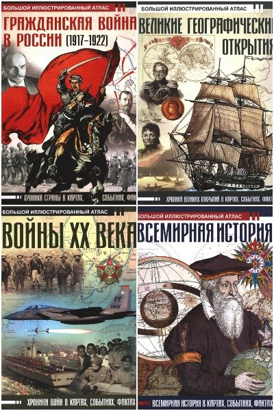 Предлагаемае читателю книги представляют собой собрание цветных карт, содержащих подробную информацию о событиях истории. Наряду с картами книги включают в себя сопроводительные тексты, в которых изложены особенности и итоги военных событий, отраженных на картах. Материал дополнен иллюстрациями, биографиями отдельных политических и военных деятелей. Особое внимание в атласе уделено событиям, которые сыграли важную роль в истории России. Книги адресованы широкому кругу читателей, интересующихся военной историей.